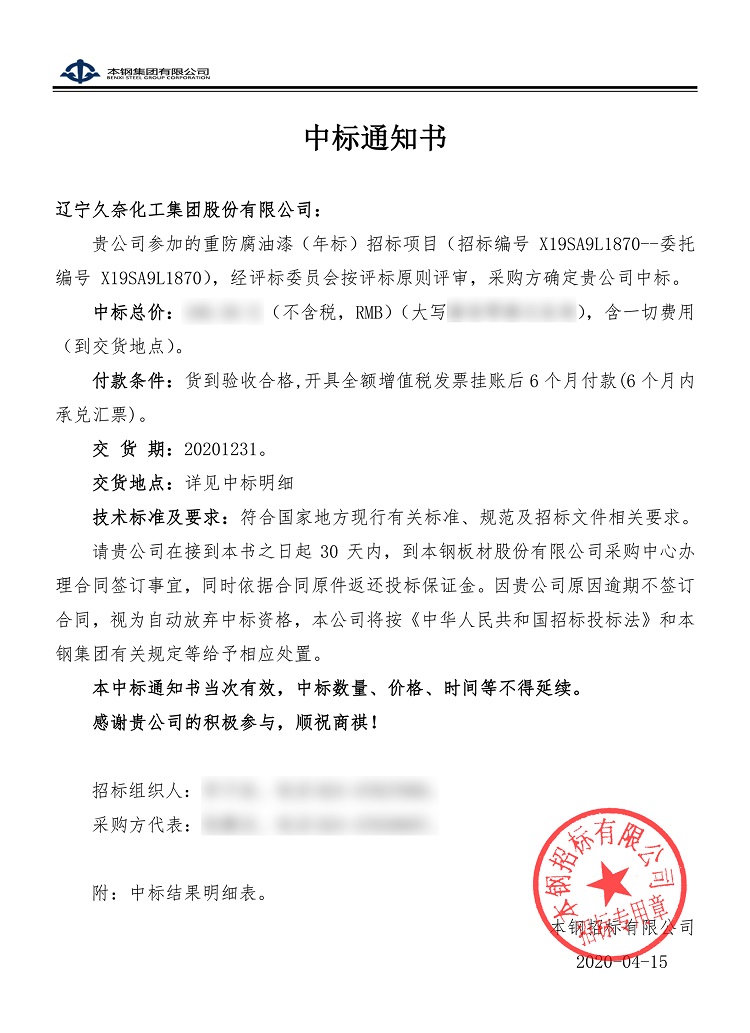 發布來源:本鋼中標通知書
